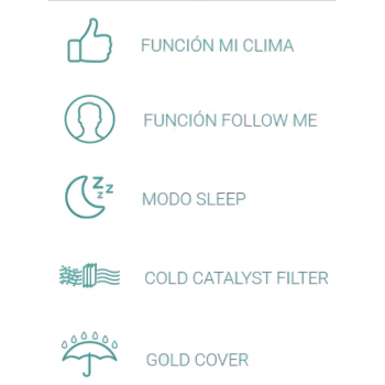 Funciona con gas refrigerante R32, un compuesto ecológico que no daña la capa de ozono y tiene un menor potencial de calentamiento global, ofreciendo al mismo tiempo una mayor eficiencia energética. Además, cuenta con modo Sleep, función Follow Me, filtro Cold Catalyst y tecnología de memorias inteligentes, que adaptan automáticamente el clima según la preferencia del usuario y el ambiente.