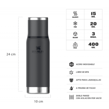on una capacidad de 500 ml, más pequeña y ligera, la nueva Adventure está hecha a medida para tu día a día. Ya sea en casa, en el trabajo o al aire libre, tu bebida siempre estará a la temperatura perfecta. Nuestro desempeño sigue siendo inigualable. Con el tapón cebador de precisión 360º, ¡el flujo es perfecto! Úsalo de buena gana. ¡Todos nuestros productos tienen garantía de por vida!