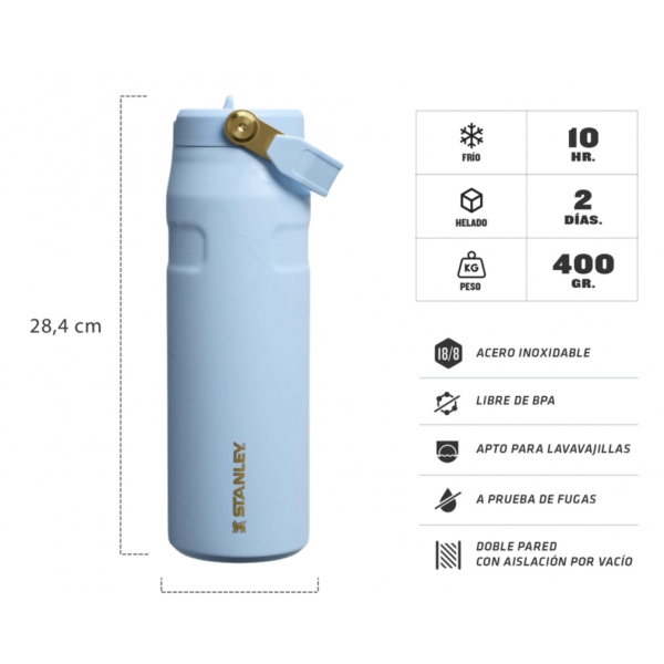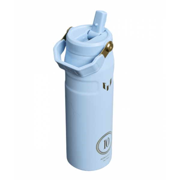 Start early. Stay Late. Esta colección Messi x Stanley 1913 en celeste eléctrico cuenta con un relámpago en relieve que resalta con su acabado dorado de primera calidad. La botella IceFlow™ Flip Straw 2.0 de 709 ml usa la tecnología AeroLight™, que la hace un 33 % más ligera que la mayoría de las botellas de acero inoxidable. Bebe rápido: simplemente abre la boquilla incorporada y alimenta tu dedicación dentro y fuera de la cancha.