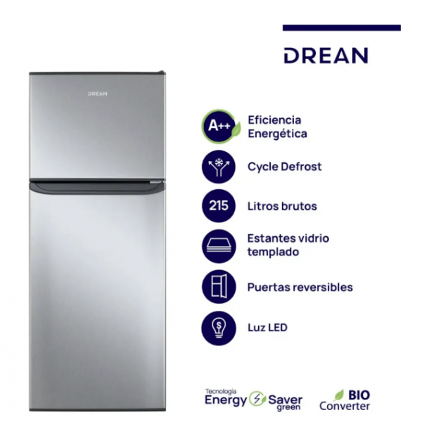Heladera con freezer ciclica drean Volumen bruto 215 litros