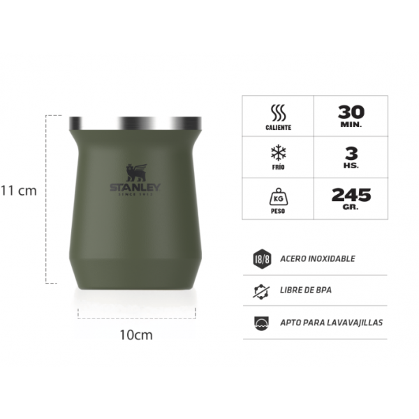 El mate Stanley mantiene la temperatura durante toda la cebada. Es práctico e higiénico.
