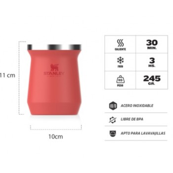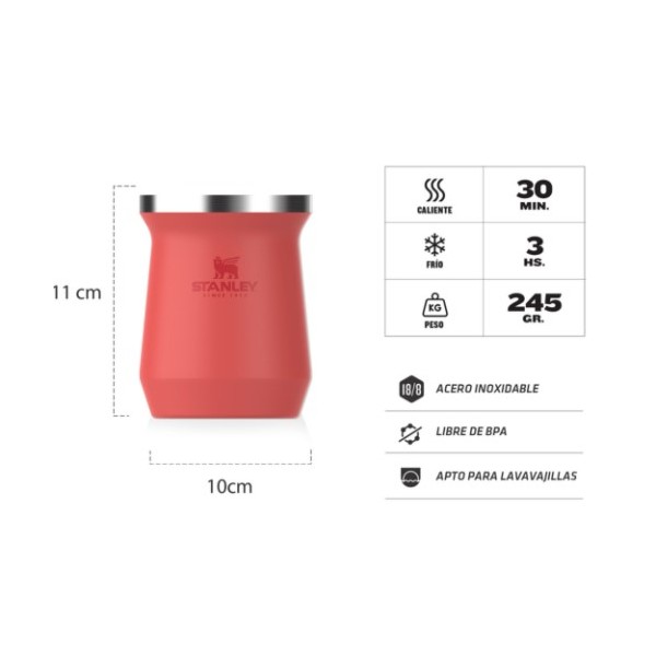 El mate Stanley mantiene la temperatura durante toda la cebada. Es práctico e higiénico.