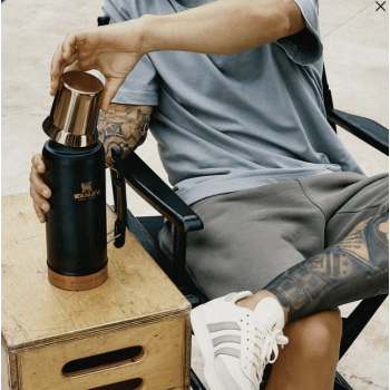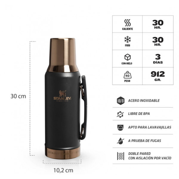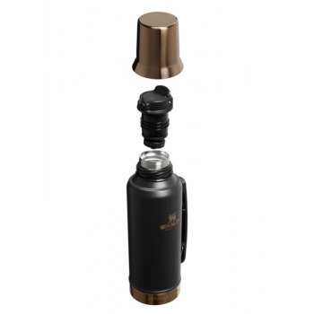 Start early. Stay late. Ese es el secreto. Esta colección Messi x Stanley 1913 en color negro Black Pebble viene con detalles en color oro rosado pulido que celebran un legado construido a base de años de trabajo duro y dedicación, y, de vez en cuando, un poco de magia. El Termo Mate System de 1,2 l cuenta con un pico de alta precisión único que no hace falta girarlo. Con levantar la pestaña conseguirás verter un chorro continuo. La tapa diseñada con aislamiento para que sea usada como mate, para que puedas alimentar tu propia magia dentro y fuera de la cancha.
