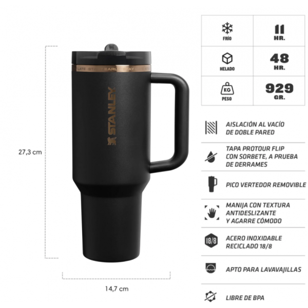 Start early. Stay late. Ese es el secreto. Esta colección Messi x Stanley 1913 celebra un legado construido a base de años de trabajo duro y dedicación, y, de vez en cuando, un poco de magia. El Quencher ProTour de 1,18 l cuenta con una tapa Flip Straw a prueba de fugas. Bebe rápido: solo tenés que levantar la boquilla incorporada y alimentar tu propia magia dentro y fuera de la cancha.