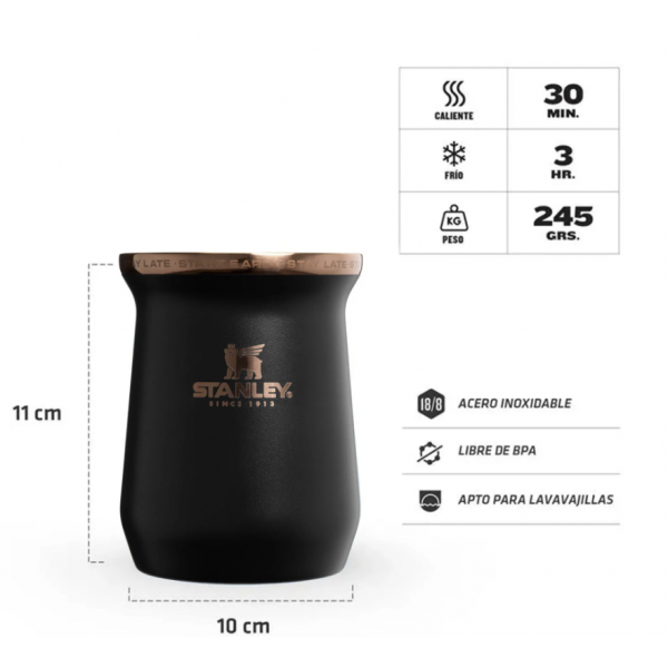 Start early. Stay late. Ese es el secreto. Esta colección Messi x Stanley 1913 celebran un legado construido a base de años de trabajo duro y dedicación, y, de vez en cuando, un poco de magia. El Mate Clásico de 236 ml es de acero inoxidable. El aislamiento térmico de doble pared mantiene tu mate a la temperatura ideal para que puedas alimentar tu propia magia dentro y fuera de la cancha.