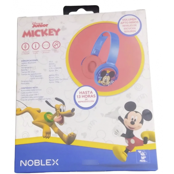 AURICULAR VINCHA, CONEXION BLUETOOTH, CON MICRÓFONO INCORPORADO, TAMBIEN ES CONEXION AUXILIAR. HATA 13 HORAS DE BATERÍA. DISEÑO DE MICKEY