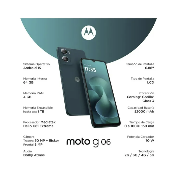 Móvil G06 tampestry azul 4GB/64GB XT25232TA Motorola