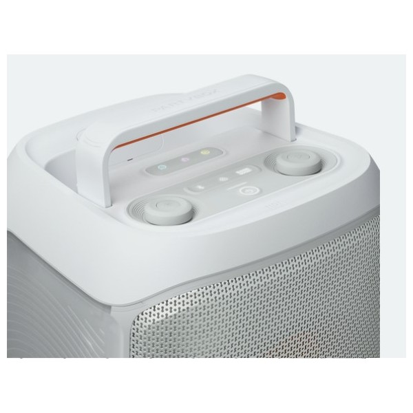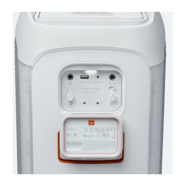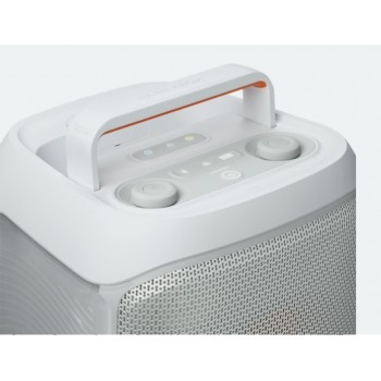El asa plegable ergonómica hace que el PartyBox Club 120 sea fácil de llevar contigo a cualquier parte y la construcción a prueba de salpicaduras significa que no se verá afectado por una pequeña lluvia. Ofrece hasta 12 horas de reproducción, y si la fiesta sigue fluyendo para entonces, solo tienes que cambiar la batería reemplazable para mantener la música y las luces.